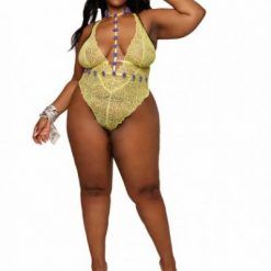 Stretch Lace Teddy & Organza Rosette Harness Set Citrus Q/s