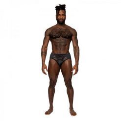Male Power Sassy Lace Bikini Solid Pouch Black Xl
