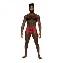 Male Power Sassy Lace Bikini Solid Pouch Red L