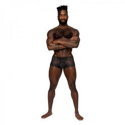 Male Power Sassy Lace Mini Short Sheer Pouch Black Xl