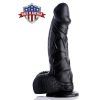 Measurements: 9.5 inches in total length. Vaginal bulb is 4 inches insertable length and inflates from 1.55 to 2 inches at widest diameter. Shaft is 5.75 inches insertable length, 1.5 inches at widest diameter. Materials Silicone Strap On, ABS plastic Remote Control. Note charges via USB. Remote control requires 2 AAA batteries, not included.
