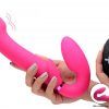 Equip your hips with a dual ended dildo designed for strapless strap-on fun! The G-Pulse offers double ended pleasure for both partners in the form of powerful vibes and clitoral pulsing. This meaty, velvety shaft provides a satisfying fill while staying in place via exclusive Ergo-Fit technology – the inflatable vaginal bulb enables the wearer to find the perfect amount of fill in their vagina to keep this powerful shaft in place while they thrust! The pulsing clitoral pad and G-spot tip gives the G-pulse a blissful feel for you and your partner, while the Ergo-Fit tech lets you play with freedom without a pesky harness for you to worry about. Easily target your partners weak spot with the subtle curved shaft and phallic head, and add in powerful vibes to bring your pleasure to new heights! Choose from 3 speeds and 7 patterns of vibration to send down this phallic shaft, as well as 10 clitoral pulsing actions to stimulate your sensitive clit with every movement of your hips! Control each function with easy to use buttons on the base of this strap on, as well as on the included wireless remote control. Change each function and vaginal bulb inflation with a push of a button to change your playstyle during use! The G-Pulse is rechargeable with the included USB charging cable, and is made with premium phthalate free silicone for a luxurious, velvety, and body safe feel. Designed with IPX6 waterproofing for ease of cleaning and shower friendly use if the mood calls for some steamy fun. Dildo Measurements : Overall length 9.7 inches, insertable length 5.9 inches, widest insertable width 1.7 inches, narrowest insertable width 1.3 inches Vaginal Bulb Measurements : Insertable length 4.5 inches, width 1.5 inches, inflated width 2.1 inches Materials : Silicone, ABS Plastic Color : Pink