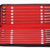 Increase your sexual pleasures with this rosebud sounds kit. This kit is comprised of 13 individual chrome plated steel sounds measuring 12 inches long and varying in size from 3mm to 15mm around. These sounds are great for urethral play, which involves stimulating and stretching the urethra for maximum pleasure. The sounds have a bulbous head at the end of the shaft, therefore giving them the rosebud moniker. We recommend that you use sounds cautiously. It is very possible to damage the urethral area, especially if you also use them in the context of electro-stimulation. Make sure that you and/or your partner are experienced in the use of sounds before using them for urethral play.