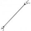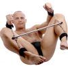 This versatile bondage piece goes beyond the standard spreader bar. The lightweight metal bar is a fixed width, and capped on each end with plastic. The bar is sturdy and strong, ready to withstand any struggle your partner puts up. Each end supports and sturdy O-ring, to which 4 swivel snap hooks are attached. Use this bar to hobble your pet, or to bind their wrists to their ankles. Use it in the front or behind, between ankles and wrists, or to an anchor point of your choosing. Make your pet hold their arms out and attach weights to the end, with a punishment in store if they move. The possibilities are limited only by your devious mind. Measurements: 24 inches in length Material: Iron with zinc polish, plastic Color: Silver Note: Cuffs sold separately Warning: This is a NEW item that is not in retail packaging, usually a plain box, wrapped in plastic or a poly bag.