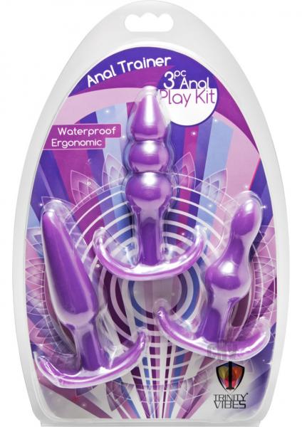 Measurements smooth butt plug 4.5 inches in total length, 4 insertable, 1 inch in diameter. Bubble butt plug 4.5 inches in total length, 4 insertable, 1 inch in diameter. Single bead butt plug 3.75 inches in total length, 3.5 insertable, 1 inch in diameter. Material Thermoplastic Elastomers TPE. Color Purple. Note anal play kit comes with 3 anal plugs.