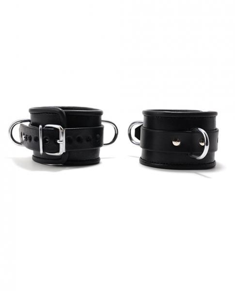 Designed with comfort in mind, the interior of the cuffs are constructed with soft garment leather while the outside is made with durable latigo leather held together by nickel plated steel hardware. Throw a lock on the locking post and rest assured, no amount of struggle is going to let anyone free. Just intimidating enough to keep the novice BDSM fan intrigued but solid enough to keep the hardcore enthusiast engaged.