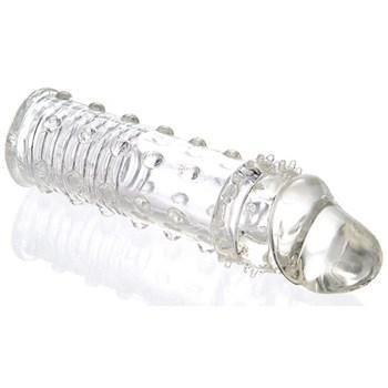 Adam and Eve line Adam’s Penis Extension features: 6 inches long by 1.5 inches wide penis enhancing sleeve. Adds 2 inches of length plus girth. Made from body safe, phthalate free soft and stretchy clear jelly materials. Realistic shape for ultimate ecstasy. Pleasure points inside and out. Securely fits most size of penis or plastic slimline vibrator. Clear so you can watch all the action.