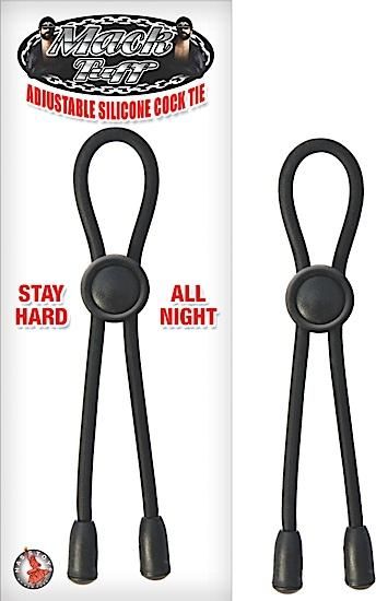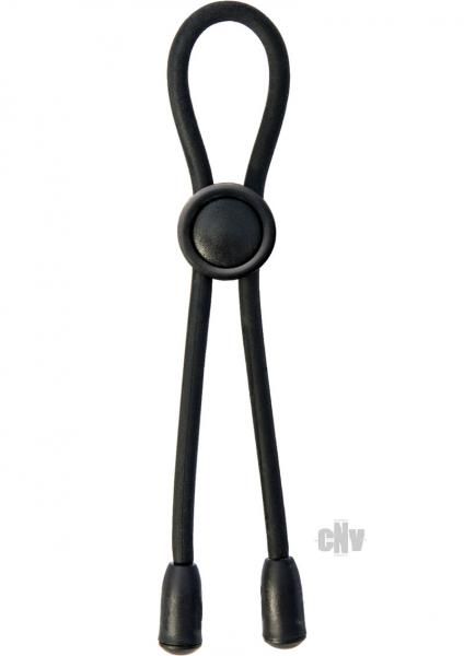 Mack Tuff Silicone Cock Tie Black from Nasstoys of New York features: adjustable cock ring Lasso style. Stay hard all night. Phthalate free materials: Silicone, ABS plastic. Length 5 inches.