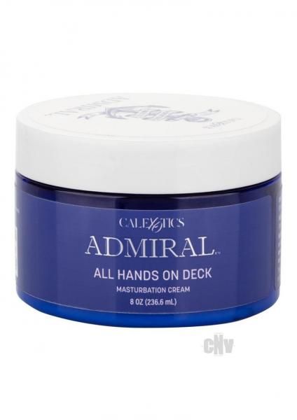 Explore uncharted territories of pleasure and explore any way you desire with the Admiral All Hands On Deck Masturbation Cream. The premium cream lubricant is enriched with moisturizing almond oil for a super-slick feel. Keep playtime going as long as you can with the slippery wet formulation for a naturally moisturizing and long-lasting effect. Expertly created by the sexual health experts at CalExotics, the creamy formula is pH-friendly, safe for all skin types, and free from artificial fragrances and colorants. Made in the USA. How to Use: Use as needed to enhance intimacy and lubricate pleasure. Apply a small amount of cream lube to desired area to lubricate, reapply as needed. Easily washes away with warm water.