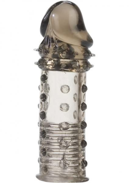 Size does matter! Adds a full 2/ 5 cm to length. Soft, sensual, ribbed extension with an accentuated penis head. Comfortable and discreet. Unscented TPR. One size fits all trim to fit. 6.25x 1.5/ 16 cm x 4 cm.