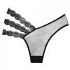 Add this basic panty to your flirty collection. It features a solid crotch panel, double hook front closures, thin hip straps, and a Y-shaped back.