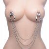 Measurements each nipple clamp measures 2 inches in length and opens to .8 inch. Connector chains extend to 12 inches in length. Material Metal. Color Silver. Please note weights not included.