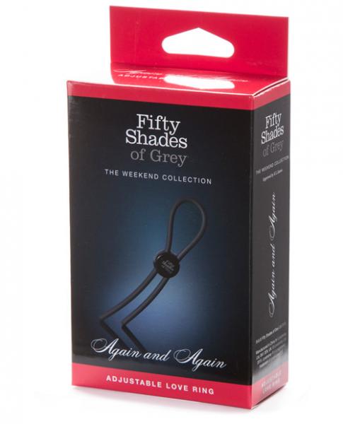 Silicone lasso style Fifty Shades of Grey love ring. Can help enhance his erection size and stamina during lovemaking. Completely adjustable to suit men of all girths. Fit can be altered during sex for a tailored experience. Travel friendly sizing for holidays and hotel stays. Quick release button. Please note shown on dildo, not included.