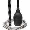 Measurements large enema tip approximately 10 inches long. Small tip approximately 5.5 inches long. Hose approximately 80 inches in length. Bulb holds 10 ounces of liquid. Materials Metal, PVC. Color Black.