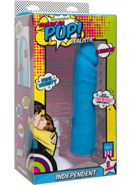 Collectors, take note: American POP! is here to revolutionize your pleasure products gallery with a vibrant selection of vibrators, plugs, dildos, and more! In true Pop art fashion, one of Doc Johnsons bestselling and most recognizable shapes gets a modern makeover in the dual density Independent, an 8-inch dong with realistic contours and veins. Independent is compatible with the Vac-U-Lock interchangeable sex systems harnesses and accessories and comes with a removable Vac-U-Lock suction cup base.