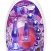This 3 piece amethyst adventure kit is perfect for beginners, offering 3 ways to play! The firm yet flexible material inserts easily and comfortably, with a slick feel. Each toys has a tapered design, while offering a range of sensations and sizes. The largest plug is compact, with a gently swelled shaft and wide base. The smallest plug has a hollow chamber at the base, so you can wear it on the end of your finger, or add your own peanut vibe to add even more stimulation. The multi size beads have a looped handle, perfect for quick removal right at the moment of climax. Cleans easily and phthalate free.