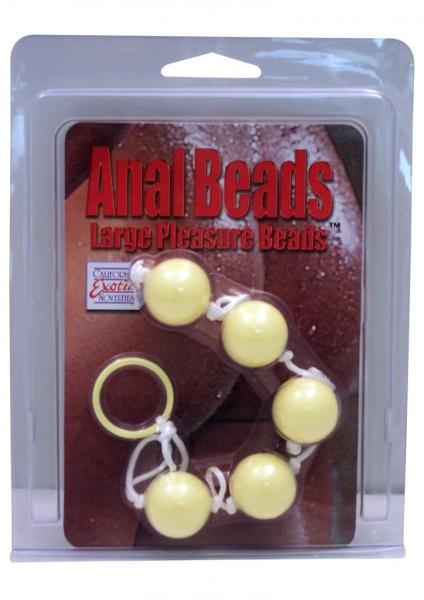 Anal Beads Large 5 beads pleasure plastic anal beads on a string. Assorted colors. Safe and pure for body and pleasures. Made using phthalate free, non-toxic materials ABS plastic with nylon cord. Ring on the end makes using non-vibrating anal beads easy to enjoy then remove safely. Anal Beads measure 5 inches long by 1 inch wide. Beads are graduated in diameter the largest bead is approximately an inch wide around. Bulk weight 1.0 ounce. Always clean before and after use plus between partners. Category: For Women, Bullets, Beads & Balls, Beads. Anal Beads is a registered trademark for California Exotic Novelties. Sex toys and sexual wellness.