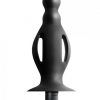 Anal Ese P-Spot features dual motors. 11 vibration functions. Push button or remote control. Includes free drawstring bag. Waterproof vibrations. Phthalates free, RoHS compliant materials Silicone shaft, ABS plastic base. Rechargeable prostate massager. Charging time 60 minutes. Working play time 120 minutes. Dimensions size overall length 5.25 inches, width 5.5 inches. Circumference 3.75 inches. Insertable length 3.75 inches.