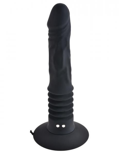 Features: 11 vibration functions. Ultra hygienic Elite Silicone. Naturally responsive thrusting action. Thrusts up to 1.3 inches. USB rechargeable magnetic charging plug. Sturdy suction cup. Dimensions length 12 inches. Width 1.4 inches. Girth 4.3 inches. Insertable length 7.3 inches. Total length thrust extended 13.3 inches. Package depth 4 inches, width 4 inches, height 10 inches.
