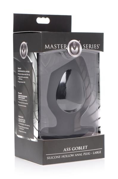 Quench your anal cravings with the Ass Goblet! This larger version of the plug is hollow, but angled for easy insertion to set it apart from similar anal accessories. The comfortable, rounded opening assists with penetration, allowing the wide bulb to squeeze into you. Once inside, the hollow core leaves you open to a peek or a poke! The ergonomic base sits perfectly between your cheeks so that you can wear it for hours!