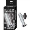 Ass-Sation brings together metal and vibration for orgasmic results. For lovers of metal sex toys, you can now take part in a vibration in your favorite material sensation. Explore 10 different vibrating functions using the controls on the toy or the handy remote control. andnbsp;Try immersing the Ass-Sation Remote Control Vibrating Metal Butt Plug in warm or cool water beforehand for fun sensation play. The Ecstacy Plug is a semi-realistic cock-shaped plug that is ideal for all-day wear. The shaft is smooth and straight, with a softly pronounced cock head.andnbsp;The curved tip and plump penis head are sure to hit just the right spot every time. Use with any of your favorite lubricants.andnbsp;After use, carefully wash the toy with mild soap and water or Toy Cleaner for even quicker cleanup. 10 functionRemote controlBody safePower button lights upRoHS compliantPhthalates freeWaterproofMaterials: Alumninum and Silicone, Remote – ABSPlug Size: Length – 4.5, Width – 1.125, Circumference – 3.875Remote Size – 3 x 1.75Rechargeable: Charging Time – 2.5 hours, Working Time – 2 hoursVoltage – 3.7V
