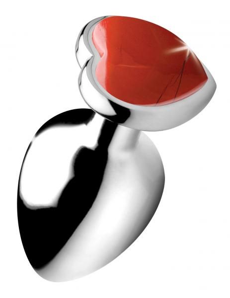 The real Red Jasper gemstone embedded in this plug helps channel your passionate energies! This metallic butt plug features and heart-shaped Red Jasper gem stirs your passions and your supplements your inner strength. Stimulate your creativity, courage, and sexual energy – perfect for beginners and experts alike! Constructed with a body safe aluminum alloy that is easy to clean and compatible with most lubes so you can play with your favorite slippery stuff. Measurements : Overall length 3.7 inches, insertable length 3.2 inches, diameter at widest point 1.6 inches Materials : Aluminum alloy, Red Jasper Color : Red.