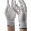 Measurements 9 inches in length and 5 inches wide, unstretched. One size fits most. Materials Fabric, metal, latex. Color White. Note Leads and powerbox required to operate, not included. Both leads must be connected for gloves to work.