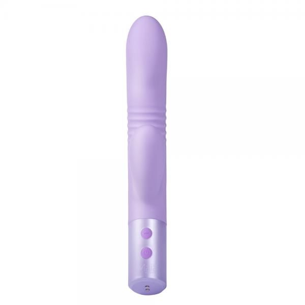 Ayla Liquid Silicone Rechargeable Dual Motor Thrusting Rabbit Vibrator from Maia Toys. Ayla By Maia Novelties is a Dual Motor Thrusting Rabbit Vibrator features 10 thrusting functions along side 10 vibration modes. The Citoral Stimulator vibrates dependently with the thrusting action creating intense stimulations both internally and externally. Fully Waterproof for wet action. Ayla Rabbit Vibrator measures 9.68 inches in length and is 3.5 across the width.