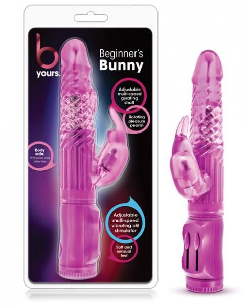 Looking for a rabbit vibe that will give you great orgasms without breaking the bank? The B Yours Beginner’s Bunny is a petite sized rabbit designed for the woman who wants a smaller sized rabbit. The multiple rows of rotating pleasure beads and the gyrating shaft’s multiple speeds are controlled by an easy to use slide controller. The vibrating clitoris stimulating rabbit ears hugs your clitoris and is independently controlled by the other sliding controller.