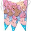 Bachelorette Party Banner features fun cartoon penises on triangle shaped flags plus two string to tie up to decorate your room to celebrate her last night as a single woman. Bachelorette Party Banner from Ozze Creations.