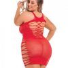 Back 2 Basixxx Hi Neck Dress. Strategically placed cut outs along hips and in front. From Pink Lipstick lingerie line by Rene Rofe. Ladies plus sizes, One Size Queen, 1X/3X. Bust 43 inches to 50 inches. Waist 34 inches to 42 inches. Hips 44 inches to 52 inches. Cups D/DD. Dress sizes 16 to 22.