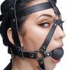 Trap your lover in the confines of this secure and attractive head harness, perfect for topping off your bondage scene. The man made leather has a realistic look and soft feel. The tasteless and odorless ball gag will completely restrict their speech once the harness has been tightly buckled in place. Each of the fully adjustable straps will wrap around the face of your lover to provide a unique fetish aesthetic that will enhance the mood of your evening.
