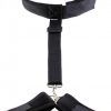 The neoprene cuffs each have metal D-rings that attach to a metal spring clip on the back strap, and the cuffs easily adjust with Velcro to fit most sizes. The back strap can also be adjusted to change the placement of the subject’s wrists. The firm rubber ball gag is made from phthalate free PVC and is 2.25 inches wide. It is perfect for beginner BDSM play and tough enough for even the most experienced users!