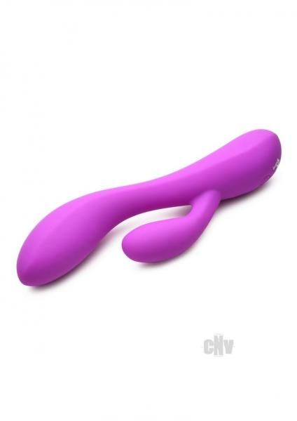 Give yourself more than just surface level pleasure. Indulge in passion with this rabbit vibrator! The shaft is flexible and gently parts your lips to fill you up and send satisfying vibrations inside. As you bring it inside, the rabbit arm stimulates your clitoris for dual stimulation! Enjoy 3 speeds and 7 patterns from two different motors that double your pleasure both inside and out! Made out of silky smooth, seamless, premium silicone it is phthaltae-free and body-safe to use with water-based lubricants. Recharge after each use with the USB charger provided. Wash with warm water and mild soap before spraying with a toy cleaner and patting dry with a soft towel. Turn the toy on and add some lube. Start to massage your vulva and warm yourself up. Use it anywhere you feel is sensitive like your nipples, belly, and inner thighs. Then slip it inside and position it so the rabbit arm is pressed against your clit. As you gently massage yourself, play with the vibration patterns and explore which ones are your favorite! Indulge, enjoy and repeat!