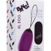 Bang! XL Vibrating Egg Purple from XR Brands. Feel the sublime power of BANG Toys XL Vibrating Egg! The 21 different vibration patterns, combined with the silky smooth feel of its silicone material, gives you plenty of options to play with when the mood strikes. This big bullet is also waterproof, allowing for use in the shower or the hot tub. The fun never stops with this USB rechargeable vibrator, as it also comes with a wireless remote for easy solo use or exciting partner play! Play with confidence, this egg is made with body safe, non porous, phthalate free silicone. Use only with water based lubricant, silicone material is incompatible with silicone based lubes. Color Purple. Measurements 3.1 inches total length, 1.6 inches at widest diameter. Materials: Silicone, ABS Plastic. Includes: XL Egg Vibe, remote control with 1 XR2032 battery, USB charging cord, and detailed instructions