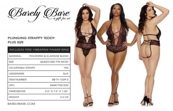 Barely B Strappy Plunging Teddy Ps Blk
