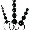 Measurements small anal beads 5 inches in length, 0.75 inch in diameter at widest point. Medium anal beads 5 inches in length and 1.2 inches at widest point. Large anal beads 6.5 inches long and 1.2 inches at widest point. Materials Thermoplastic Rubber TPR, nylon. Color Black.