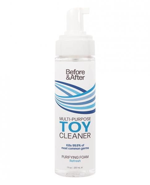 Purifying Foam Toy Cleaner. Clean with confidence using Before and After. Simply spray and let the toy cleaner do the heavy lifting. Powered by naturally derived ingredients that clean and disinfect, this gently fragranced, antibacterial formula is fast-acting and proven to kill 99.9% of most common germs. A must have addition for toy care that’s easy and effortless. Powered by naturally derived ingredients. Proven to kill 99.9% of germs. Anti-bacterial formula is easy to apply and fast activing. Triclosan Free Paraben Free. This product is not tested on animals. Made in USA. INGREDIENTS: Water (Eau/Aqua), Cocamidapropyl PG-Dimonium Chloride Phosphate, Benzyl Alcohol, Disodium EDTA, Citric Acid, Sodium Hydroxide, Fragrance (Parfum).