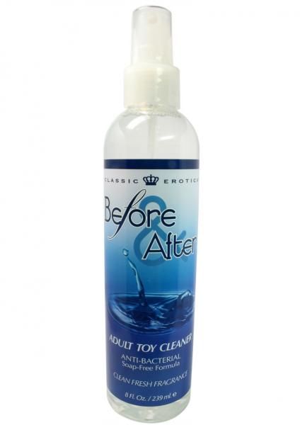 The BEFORE and AFTER ADULT TOY CLEANER is as easy to use as 1-2-3!…1:Spray On…2:Wipe Off…3:Rinse…That`s it! The BEFORE and AFTER ADULT TOY CLEANER kills bacteria and freshens toy with a sweet fragrance. Use on new toys for first time use and every time thereafter. Also use Before and After any sexual use!