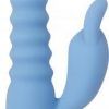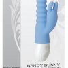 Bendy Bunny Rabbit Style Vibrator from Evolved Novelties Blue. This luxuriously soft rabbit vibe has everything you need for a delicious blended orgasm! Flexible and pose able. Its bulbous gently ribbed head and flexible shaft can effortlessly help you reach your G-Spot, while the hard working plump bunny ears deliver an intense clitoral massage. Reach your ultimate peak with two independently controlled motors that feature nine speeds each and over eighty combinations in total! Easy to use two button controls. Water play is a joy since this toy is completely waterproof and submersible. Material Silicone. Color Blue. Power Rechargeable USB. 5 year warranty.