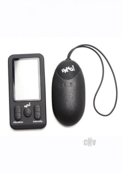 Feel the intense power of BANG!`s XL Silicone Vibrating Egg! With 5 different vibration patterns and 5 intensity levels you can mix and match for a combined 25 different combinations of play, giving you plenty of options with when the mood strikes. Insert vaginally for direct G spot stimulation and retrieve easily with its included pull cord. Its hypoallergenic silicone has a sleek metallic sheen that is silky smooth to the touch. This plus sized bullet is waterproof, allowing for play practically anywhere. The illuminating LCD display remote allows you to view exactly what intensity level and vibration pattern you are on even in the dark. The added remote is great for solo use or exciting partner play! Use it in the bedroom or for a night of fun out on the town. Play with confidence – this egg is made with body safe, non-porous, phthalate free silicone. Use only with water-based lubricant, silicone material is incompatible with silicone based lubes. Color: Metallic Black Measurements: 3.1 inches total length, 1.6 inches at widest diameter Materials: Silicone, ABS Plastic Includes: XL Egg Vibe, Remote control with 1 CR2032 battery(included), USB charging cord, and detailed instructions