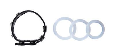 The Bionic Electric Pump lets you take your pumping experience to the next level! Our unique adapter lets you use this incredible pump with other Size Matters cylinders. It provides a continuous even flow of vacuum pressure, and its brass pressure valve allows you to adjust the intensity of the suction. The gauge allows a view of the precise pressure level for maximum control over your pumping regimen. This electric pump offers superior power and convenience over manual pumps and achieves higher levels of suction much faster. To help maintain your erection, this set includes an adjustable snap on leather cock ring, and three different sized clear stretchy cock rings.
