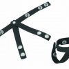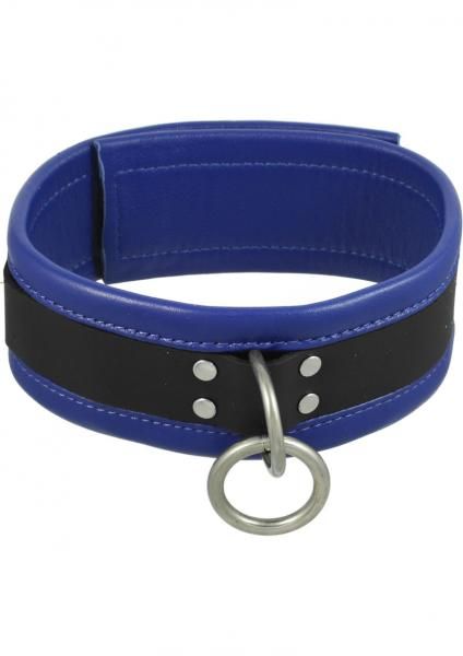 Made with only the finest leather, this collar features a stunning two-tone color design with strong and durable construction for long-lasting use. Finely detailed stitching and solid brass rivets let you know that this piece is sturdy, helping to heighten the bondage atmosphere. The large portion of the collar is royal blue while the smaller strap portion that runs parallel to the blue is the classic black. This black portion holds the brass buckle and attached O-ring for connection to a leash or other restraint device.
