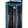 Extension sleeve with scrotum strap has realistic look with veins, sculpted head and folds. Feels Skinsational! Color Black.