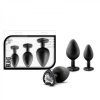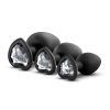 Your anal training play just got pretty with this sweet set of Bling Plugs! Starting with the small size for beginners, you can slowly graduate to the medium size and then to the large size when you are fully comfortable. This kit includes three plugs, ranging in size from small, medium, and large. Each plug features a tapered tip for easy ion and a tight neck for gentle pressure and extended wear. Use this kit if you and your partner are new to anal play. Or just use it in addition to your regular erotic play. For the best experience, use with your favorite, high quality water based lubricant. Dimensions length small plug 2.8 inches, medium plug 4.3 inches, large plug 5.2 inches. Width small plug 1 inch, medium plug 1.4 inches, large plug 1.75 inches.
