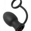 This cock ring combo offers firm erection enhancement coupled with a nice fat plug for anal stimulation. The classic shape has a slightly tapered tip and a nice round body to fill you up. The vibrating bullet adds exciting sensations at the touch of a button. The premium material is phthalate free and easily cleaned, and is safe with water based lube.