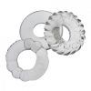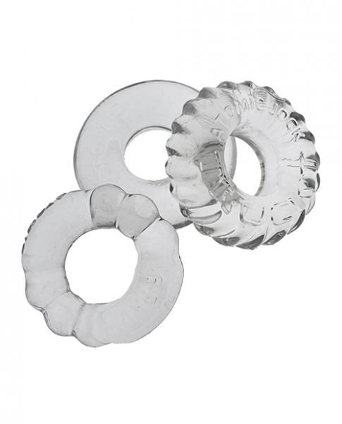 BONEMAKER3 3-pack cockrings by Oxballs Flextpr andnbsp; BONEMAKER 3-pack is our three best cockrings for 3X the bone3 ways to grip your junkor your ballsor both andnbsp; TRUCKT large is a ribbed non-roll grippy ring perfect for your junk or stacking on your balls.andnbsp; DO-NUT is a fuck ring that grips tight for maximum bone-ness.andnbsp; 6-PACK is rippled with a ball flange for more ball-lift. andnbsp; BONEMAKERS are all made of our softest, rubbery, incredibly stretchy Flextpr–three cockrings that are designed for comfortable wear and always a bigger, harder basket. All three are the right-size rings for maximum stretch, we call them fuckrings because they are designed for harder play, JO, pumpinganytime you need more grip. andnbsp; Our goal is the absolute best design, cockrings with the best feel and cool, lush colors that fit your sex, fit you. andnbsp; Right size for a more grip where you want it Max stretch Flextpr material fits and feels amazing and lasts OXBALLS best 3 power rings andnbsp; All original design copyright OXBALLS Flextpr our own super-stretchy, strong blendthe right grip that doesn`t pinch. Phthalate free and no scent. LUBE SAFE:andnbsp; Water-based lube, hybrid or silicone lube recommended.andnbsp; Oil-base lubes not recommended. CARE:andnbsp; Wash after use in warm soapy water, air dry.andnbsp; Store toys separately:andnbsp; we recommend storing in breathable cloth pouches or for larger toys, in cotton socks. Made in China andnbsp; SIZE/DIMENSIONS AND WEIGHT: andnbsp; BONEMAKER3 andnbsp; SMOOTH (ATOMIC JOCK) Height .5 3/13mm Width: 2/51mm Length: 2/51mm Outside circumference: 6/153mm Outside diameter: 2/51mm Inside circumference: 2.5/64mm Inside diameter: .75/20mm Weight (product only): .5 ounces/.02 kilo andnbsp; RIBBED (6 PACK) Height (thick side): .75/20mm Height (thin side): .5/13mm Width: 2/51mm Length: 2/51mm Outside circumference: 6/153mm Outside diameter: 2/51mm Inside circumference: 2.5/64mm Inside diameter: 1/26mm Weight (product only): .4 ounces/.02 kilo andnbsp; TREADS (TRUCKT) Height .9/21mm Width: 1.75/45mm Length: 1.75/45mm Outside circumference: 6/153mm Outside diameter: 1.75/45mm Inside circumference: 2.5/64mm Inside diameter: 1/26mm Weight (product only): .7 ounces/.02 kilo andnbsp; PACKAGING SIZE/DIMENSIONS+WEIGHT: Weight (product and packaging):andnbsp; 1.8 ounces/.06 kilo Package Length: 5.75/146mm Package Width: 5.5/140mm Package Depth: .9/21mm andnbsp; andnbsp; **measurements are as accurate as possible, our liquid silicone toys are handmade so slight size variations can occur.