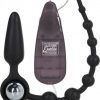 Booty Call Booty Double Dare Black Premium Silicone probes with removable stimulator. Powerful multi-speed vibrations. Stimulator and probe may be used together or separately. Easy to use controller. Safe and pure for body and pleasure made using phthalate free materials: Silicone probe, polypropylene PP controller, ABS plastic with silver plating stimulator. 3.25 inches by 1 inch probe. 8.25 inches by .75 inch beads. 2 inches by 1 inch stimulator. Bulk Weight: 4.1 ounces. Vibrating sex toy requires 2 AAA, not included.