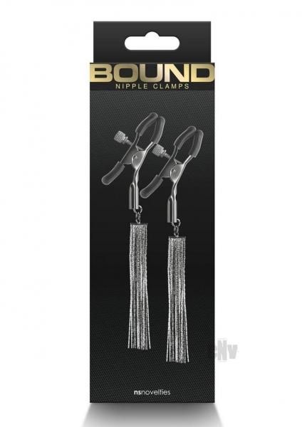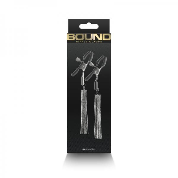 Bound Adjustable Nipple Clamps are for erotic and stimulating sensations. Made from nickel-free metal, Bound`s clamps feature silicone tips for a better comfort and fit. Dangling chains.