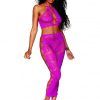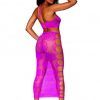 Bralette and Long Skirt Set Rose Pattern Beet One Size from Dreamgirl Lingerie. Seamless bralette and long skirt set with knitted large rose and fishnet pattern. Adjustable halter ties and keyhole details. Please note shown with G-String Panty, not included.